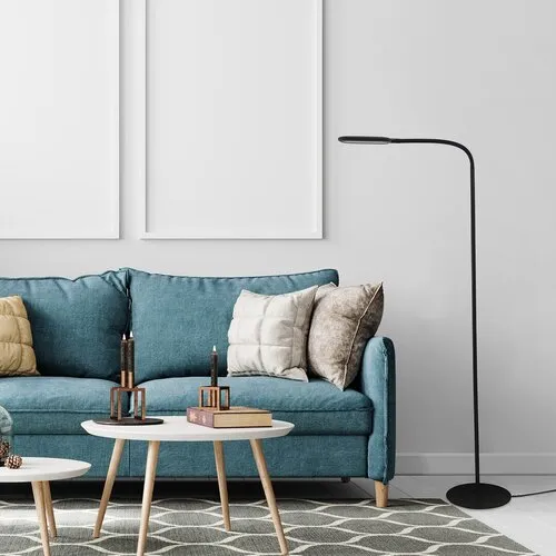 Az Adelmo állólámpa egyszerű, letisztult formatervezésének, valamint extra funkcióinak köszönhetően remek választás lehet szinte bármely modern nappaliba. Kis helyigénye révén egy kevésbé tágas szobában is könnyen elhelyezhető. A fémből, fekete színben készült modellt karcsú, ívesen hajlított szár és egészen lapos kialakítású lámpafej jellemzi, amely oldalról szinte a szár egyenes meghosszabbításának tűnik. A lámpát fehér műanyagbúra és kerek dísztalp egészíti ki. Az Adelmo beépített LED fényforrással rendelkezik, amelynek a teljesítménye 10 W, a lámpatest fényárama 910 lumen, a fényforrás fényárama 1000 lumen, élettartama pedig 20 000 óra. A fényforrás színhőmérséklete érintőkapcsoló segítségével 3000–6000 K között tetszés szerint szabályozható, azaz a lámpa képes meleg, természetes vagy hideg fehér fénnyel világítani. Az állólámpa szélessége 430 mm, magassága 1400 mm, a kábel hossza 1800 mm.