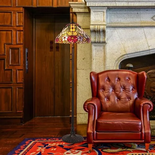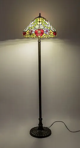 A Tiffany lámpabúrás mennyezeti lámpa, egyedi, kézzel készült termék, amely remek választás, ha a klasszikus elegancia mellett egyedülálló, különleges darabot keres. Technikai adatai: Tiffany lámpabúrás állólámpa 2 db foglalattal. 160 cm magas, 46 cm átmérőjű, bronz színű fémből készített lámpatest színes Tiffany-stílusú üveg lámpabúrával, IP20-as védelemmel. A lámpatest E-27-es foglalatú, max. 2x 60W teljesítményű energiatakarékos fényforrásokkal is használható.