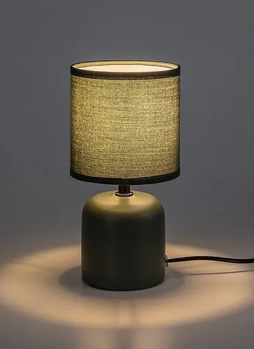 A Rábalux Daphni asztali lámpát azoknak ajánljuk, akik kisméretű, elegáns kiegészítő lámpát keresnek a nappaliba vagy a hálószobába. Ezt a letisztult formavilágú modellt elhelyezhetjük az éjjeliszekrényen, egy asztalkán vagy akár az ágy feletti polcon. Az éjjeli lámpa hengeres teste trendi zöld színű kerámiából, míg búrája hasonló színű textilből készül. A lámpabúra henger alakú és alul-felül nyitott. Sötétebb színeinek köszönhetően igazán hangulatos világítást varázsolhatunk vele a szobába. Egy darab legfeljebb 40 W teljesítményű fényforrással használható, a foglalat típusa E14. Ízlésünktől függően választhatunk hozzá meleg vagy természetes fehér fényű izzót. A kerámia asztali lámpa vezetékes kapcsolóval működtethető. Fényforrás nélkül szállítjuk.