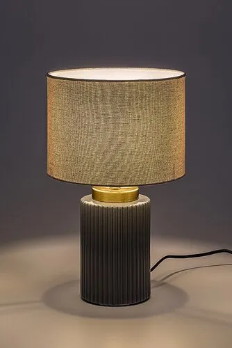 A Rábalux Glovy asztali lámpát azoknak ajánljuk, akik gondos formatervezéssel készült kiegészítő lámpát keresnek a hálószobába vagy a nappaliba. Ez a színeiben visszafogott modell sokféle szobabelsőbe beilleszthető. Elhelyezhetjük az éjjeliszekrényen vagy egy asztalon. A lámpa teste bordázott mintájú, szürke színű kerámiából, míg búrája fehér színű textilből készül. A lámpabúra henger alakú, alul-felül nyitott. Világos színének köszönhetően sok fényt átenged, így ez a modell akár olvasólámpaként is használható. Egy darab legfeljebb 40 W teljesítményű fényforrással működtethető, a foglalat típusa E14. Ízlésünktől függően választhatunk hozzá meleg vagy természetes fehér fényű izzót. Az éjjeli lámpát fekete textil kábel és vezetékes kapcsoló egészíti ki. Fényforrás nélkül szállítjuk.