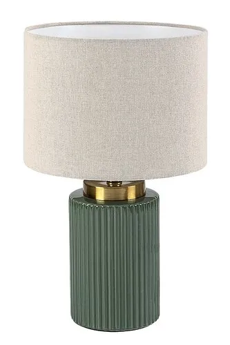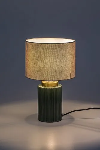 A Rábalux Glovy asztali lámpát azoknak ajánljuk, akik gondos formatervezéssel készült kiegészítő lámpát keresnek a hálószobába vagy a nappaliba. Ez a színeiben visszafogott modell sokféle szobabelsőbe beilleszthető. Elhelyezhetjük az éjjeliszekrényen vagy egy asztalon. A lámpa teste bordázott mintájú, zöld színű kerámiából, míg búrája fehér színű textilből készül. A lámpabúra henger alakú, alul-felül nyitott. Világos színének köszönhetően sok fényt átenged, így ez a modell akár olvasólámpaként is használható. Egy darab legfeljebb 40 W teljesítményű fényforrással működtethető, a foglalat típusa E14. Ízlésünktől függően választhatunk hozzá meleg vagy természetes fehér fényű izzót. Az éjjeli lámpát fekete textil kábel és vezetékes kapcsoló egészíti ki. Fényforrás nélkül szállítjuk.