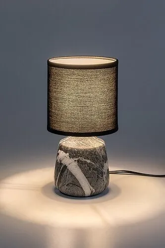 A Rábalux Nalisa asztali lámpát azoknak ajánljuk, akik kedvelik a természetes hatást keltő, harmonikus megjelenésű lámpákat. Ez a modern éjjeli lámpa szürke-fehér, márvány hatású, hengeres kerámia testtel készül, amelyet alul-felül nyitott, fekete, henger alakú textil búra egészít ki. Remek választás a hálószobába vagy a nappaliba, az éjjeliszekrényre vagy asztalra helyezve. A sötét színű búra diszkrét világítást eredményez, így ez az asztali lámpa jó szolgálatot tesz, ha az éjszaka folyamán lámpát kell kapcsolnunk, de nem szeretnénk megzavarni partnerünk pihenését. Egy darab legfeljebb 40 W teljesítményű fényforrással használható, a foglalat típusa E14. A kerámia éjjeli lámpához fekete kábel és vezetékes kapcsoló tartozik. Fényforrás nélkül szállítjuk.
