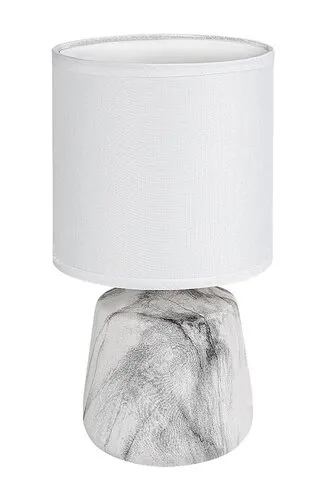 A Rábalux Nalisa asztali lámpát azoknak ajánljuk, akik kedvelik a természetes hatást keltő, harmonikus megjelenésű lámpákat. Ez a modern éjjeli lámpa szürke-fehér, márvány hatású, hengeres kerámia testtel készül, amelyet alul-felül nyitott, fehér, henger alakú textil búra egészít ki. A világos búra sok fényt átenged, így ez az asztali lámpa akár olvasáshoz vagy munkavégzéshez is alkalmas lehet. Elhelyezhetjük a hálószobában vagy a nappaliban, az éjjeliszekrényen vagy egy asztalon, de tökéletes választás a dolgozószoba íróasztalára is. Egy darab legfeljebb 40 W teljesítményű fényforrással használható, a foglalat típusa E14. A kerámia éjjeli lámpához fehér kábel és vezetékes kapcsoló tartozik. Fényforrás nélkül szállítjuk.