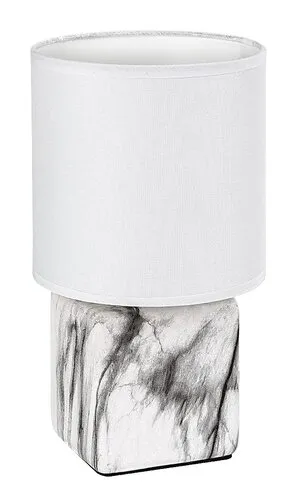 A Rábalux Nalisa asztali lámpát azoknak ajánljuk, akik modern, kompakt kiegészítő lámpát keresnek. Ez a modell a kerek és szögletes formákat természetes hatást keltő anyagokkal ötvözi: szürke-fehér, márvány hatású, tömbszerű kerámia testtel készül, amelyet alul-felül nyitott, fehér, henger alakú textil búra egészít ki. A világos búra sok fényt átenged, így ez az asztali lámpa akár olvasáshoz vagy munkavégzéshez is alkalmas lehet. Elhelyezhetjük a hálószobában vagy a nappaliban, az éjjeliszekrényen vagy egy asztalon, de tökéletes választás a dolgozószoba íróasztalára is. Egy darab legfeljebb 40 W teljesítményű fényforrással használható, a foglalat típusa E14. A kerámia éjjeli lámpához fehér színű kábel és vezetékes kapcsoló tartozik. Fényforrás nélkül szállítjuk.