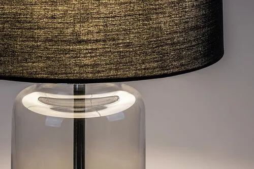 A Rábalux Rien asztali lámpát azoknak ajánljuk, akik visszafogott megjelenésű, ugyanakkor egyedi formatervezésű kiegészítő lámpát keresnek. Ez az éjjeli lámpa ideális választás a hálószobába vagy a nappaliba, az éjjeliszekrényre vagy asztalra. A lámpatest füstszínű üvegből, nyúlánk, hengeres formával készül, míg a búra henger alakú, anyaga szürke színű textil. Az asztali lámpa kisméretű, kerek, fém dísztalppal egészül ki. Egy darab legfeljebb 60 W teljesítményű fényforrással használható, a foglalat típusa E27. Mivel sötét színű búrája kevesebb fényt enged át, a lámpa hatékonyan támogatja a pihenésre hangolódást elalvás előtt. A legjobb, ha meleg fehér fényű izzót választunk hozzá. Az éjjeli lámpát fekete textilkábel és vezetékes kapcsoló egészíti ki. Fényforrás nélkül szállítjuk.