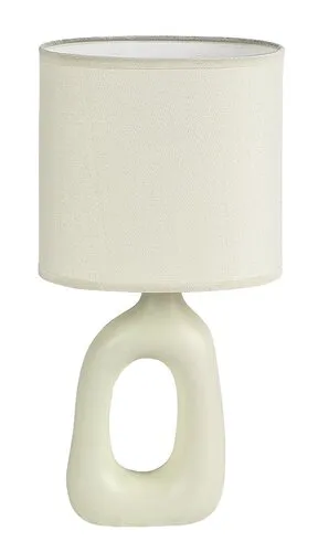 A Rábalux Sylira asztali lámpát azoknak ajánljuk, akik egyedi megjelenésű kiegészítő lámpát keresnek a nappaliba vagy a hálószobába. A modern éjjeli lámpa jellegzetességét a közepén lyukas lámpatest adja, amely fehér színű kerámiából készül. A búra henger alakú, alul-felül nyitott, anyaga fehér színű textil. Az asztali lámpát egy darab legfeljebb 40 W teljesítményű fényforrással használhatjuk, a foglalat típusa E14. Ízlésünktől függően választhatunk hozzá meleg vagy természetes fehér fényű izzót. Ha a hálószobában kap helyet, érdemes meleg fényű izzóval használni, amely segít a pihenésre hangolódni. Elhelyezhetjük az éjjeliszekrényen vagy bármilyen asztalon. Az éjjeli lámpát vezetékes kapcsolóval működtethetjük. Fényforrás nélkül szállítjuk.