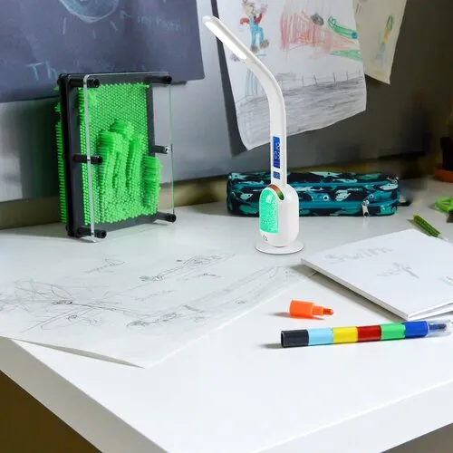A Rábalux Figen asztali lámpát azoknak ajánljuk, akik a kiterjedt funkcionalitás mellett nagyra értékelik a dekoratív megjelenést is. Ez a modern lámpa teljes egészében műanyagból, elegáns fehér színben, korong alakú dísztalppal készül. Szára vékony és lapos, alulsó részén két kijelzővel. A test dísztalppal érintkező, öblös része áramoltatható csillámos anyaggal van megtöltve – ez a rész külön kapcsolható. A lámpa RGB világításra képes, aminek köszönhetően a csillámos töltet a legkülönfélébb színekben pompázhat. A design lámpa beépített LED fényforrással rendelkezik, amely természetes fehér fénnyel világít, ezenkívül elemet is tartalmaz A fényerő a lámpa alsó részén elhelyezett érintőkapcsolóval állítható. Az asztali lámpa ideális választás a nappaliba, hálószobába vagy dolgozószobába.