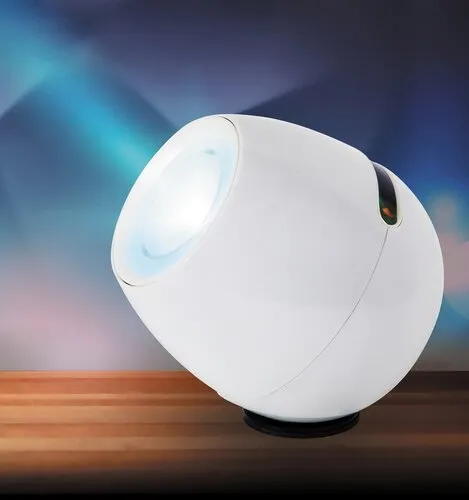 Modern megjelenésű érintőkapcsolós dekorlámpa hangulatvilágítással, DC 5V tápegységgel, USB töltőkábellel. A lámpatestbe beépített, nem cserélhető energiatakarékos RGB LED fényforrás változó alapszínű hangulatfényt biztosít. 9 cm széles és 10 cm magas, akril és műanyag szerkezet.