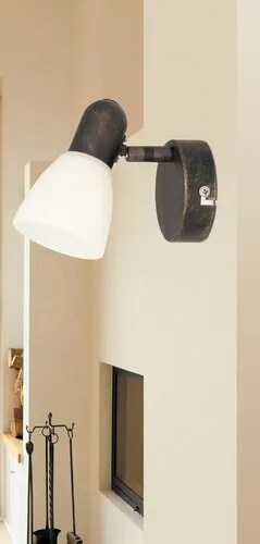 Időtlen stílusú spotlámpa, 1 darab foglalattal. 13 cm magas, antik barna színű fém szerkezet és pozícionálható, krém színű üvegbúra, IP20-as védelemmel. A lámpatest E14-es foglalatú, max. 40W teljesítményű, halogén vagy energiatakarékos fényforrással is használható.