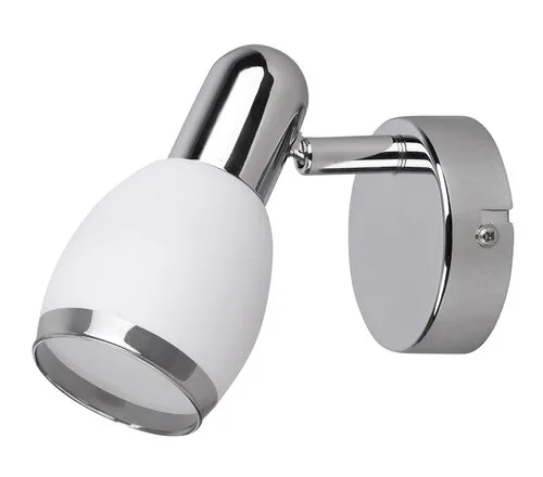 Modern megjelenésű oldalfali spotlámpa 1 db foglalattal. 13 cm magas, króm színű, fémből készített lámpatest és pozícionálható üveg lámpabúra. A lámpatest E14-es foglalatkialakítású, max. 40W teljesítményű energiatakarékos fényforrással is használható.