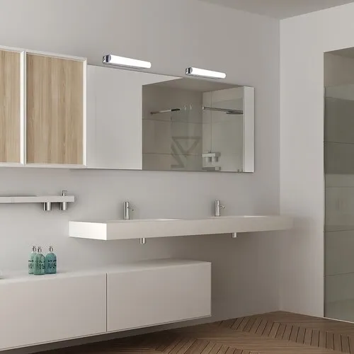 A modern stílusban készült Matt fürdőszobai fali lámpát elsősorban a mosdó feletti tükör fölé ajánljuk. A krómszínű, fémből készült lámpatestet fehér műanyag búra egészíti ki. A lámpa beépített LED fényforrással rendelkezik, amelynek teljesítménye 10 W, fényereje 960 lumen, élettartama 25 000 óra. A fényforrás színhőmérséklete 4000 K, ennek megfelelően természetes fehér fénnyel világít. A Matt IP44-es védettséggel rendelkezik, amely garantálja, hogy legfeljebb 1 mm átmérőjű tárgyak behatolása ellen, valamint bármilyen irányból fröccsenő víz ellen védett. A fürdőszobai fali lámpa méretei a következők: szélessége 350 mm, magassága 45 mm, faltól mért távolsága 80 mm. Erre a modellre 5 év garanciát vállalunk.