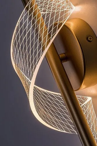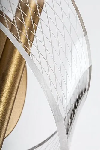 A Rábalux Zofrael fali lámpát azoknak ajánljuk, akik egyedi formatervezésű, kifinomult kiegészítő lámpát keresnek. Ez a különleges falikar lámpa ragyogó arany színben, fémből készül, és finom mintázatú, átlátszó akril búra egészíti ki. A lámpatestet egyetlen vékony, függőleges, hengeres lámpaelem alkotja, ezt veszi körül a hullámvonalban kígyózó, szalagszerű búra. A fali lámpa kisméretű, kerek, arany színű dísztalp segítségével rögzíthető a falra. Beépített LED fényforrást tartalmaz, amely meleg fehér fénnyel világít. Ez a gyönyörű modell tökéletes választás modern nappalikba és hálószobákba, ahol segítségével meghitt, otthonos hangulatot teremthetünk. A LED technológia gondoskodik a lámpa energiahatékonyságáról és hosszú élettartamáról.