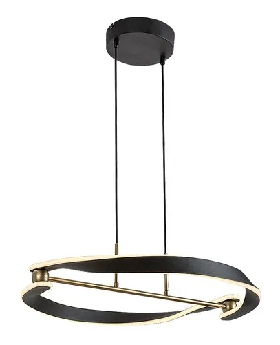 A Rábalux Adalind mennyezeti függőlámpa a Rábalux saját tervezésű modellje. Ideális választás azoknak, akik modern, kreatív formatervezésű függeszték lámpát keresnek. Elegáns arany-fekete színkombinációban, fém lámpatesttel és fehér műanyag búrával készül. Designjának lényegét két darab, együttesen kerek formát alkotó, csavart lámpaelem adja, amelyeket vízszintes, arany színű tartórúd kapcsol össze. Ehhez csatlakoznak a tartókábelek, amelyek felül kerek, fekete dísztalphoz kapcsolódnak. A lámpa beépített LED fényforrást tartalmaz, amely komoly fényerőt képvisel, és meleg fehér fénnyel világít. A függesztett lámpát a nappaliba, étkezőbe vagy a hálószobába ajánljuk. A LED technológia révén ezt a modellt energiahatékonyság és kiemelkedő élettartam jellemzi.