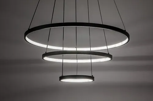 A Rábalux Beliza hármas függőlámpát azoknak ajánljuk, akik a funkcionalitást és a kreatív dizájnt egyaránt nagyra értékelik. A modern függeszték lámpa három egymás alatt elhelyezkedő, gyűrű formájú elemből áll, és fekete színben, fémből készül. A három gyűrű eltérő átmérőjű, és egymással szöget zár be. A lámpa a gyűrűk belső részén világít, a búrák anyaga fehér színű szilikon. A függeszték lámpát kerek, fekete dísztalp és ezüst színű, fém tartókábelek egészítik ki. Beépített LED fényforrást tartalmaz, amely rendkívüli fényerővel bír, ugyanakkor energiahatékonyságot és hosszú élettartamot biztosít. A fényerő és a színhőmérséklet távirányítóval állítható. Az okos mennyezeti függő lámpa ezenkívül éjszakai funkcióval is rendelkezik. Ideális választás a nappaliba, étkezőbe vagy a hálószobába.