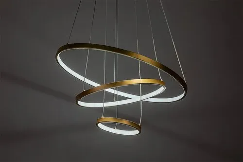 A Rábalux Beliza hármas függőlámpát azoknak ajánljuk, akik a funkcionalitást és a kreatív, látványos dizájnt egyaránt nagyra értékelik. A modern függeszték lámpa három egymás alatt elhelyezkedő, gyűrű formájú elemből áll, és arany színben, fémből készül. A három gyűrű eltérő átmérőjű, és egymással szöget zár be. A lámpa a gyűrűk belső részén világít, a búrák anyaga fehér színű szilikon. A függeszték lámpát kerek, arany színű dísztalp és ezüst színű, fém tartókábelek egészítik ki. Beépített LED fényforrást tartalmaz, amely rendkívüli fényerővel bír, ugyanakkor energiahatékonyságot és hosszú élettartamot biztosít. A fényerő és a színhőmérséklet távirányítóval állítható. Az okos függőlámpa éjszakai funkcióval is rendelkezik. Ideális választás a nappaliba, étkezőbe vagy a hálószobába.