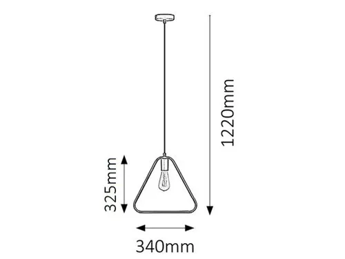 Indusztriális stílusú függeszték 1 db foglalattal. 122 cm lelógású, a lámpatest aljánál 34 cm széles, fekete színű, fémből készített lámpatest és lámpaernyő. A lámpatest E-27-es foglalatú, max. 60W teljesítményű fényforrással, így akár a vintage megjelenésű, ST58-as formájú, energiatakarékos filament LED izzóval is használható.