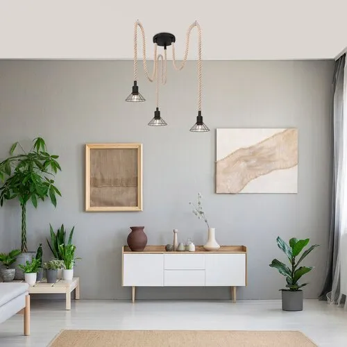 Az indusztriális stílusú Daryl hármas függesztéket elsősorban modern nappalikba ajánljuk. A fémből készült modell megjelenését az A vonalú, szélesen elterülő rácsos búrák és a vastag, kötélszerű kábelek teszik igazán egyedivé. A lámpafejek és a búrák fekete színűek, csakúgy mint a kerek dísztalp, amelynek segítségével a lámpát a mennyezetre rögzíthetjük. A Daryl három darab, egyenként legfeljebb 40 W teljesítményű fényforrással használható, a foglalatok típusa E27. Mivel a búrák teljes egészében látni engedik a fényforrásokat, érdemes a hagyományostól eltérő, különleges formájú izzókkal használni a lámpát. Ízléstől függően választhatunk hozzá meleg vagy természetes fehér fényű fényforrásokat. A Daryl hármas függeszték méretei a következők: egy-egy búra átmérője 150 mm, a lámpa belógása 1200 mm, beépítési átmérője 200 mm. Ezt a modellt fényforrások nélkül szállítjuk.