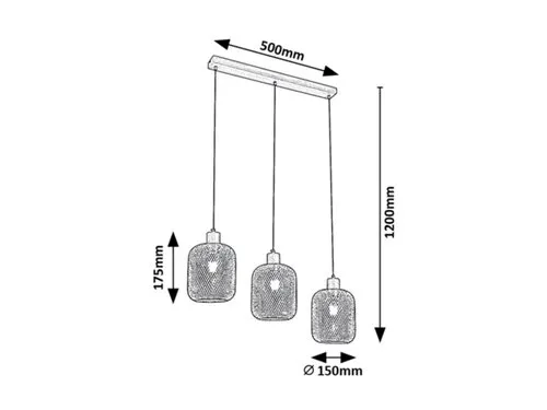 Az indusztriális stílusban készült Grendel hármas függesztéket elsősorban modern nappalikba, étkezőkbe vagy hálószobákba ajánljuk. A hosszúkás, szögletes, bükkszínű dísztalpat textil tartókábelek kötik össze a matt fekete, rácsos búrával körülvett lámpafejekkel. A lámpa három darab, egyenként legfeljebb 60 W teljesítményű fényforrással használható, a foglalatok típusa E27. Attól függően, hogy a lakás melyik helyiségében szereljük fel a függesztéket, választhatunk hozzá meleg vagy természetes fehér fényű fényforrásokat. Ha például a hálószobában kap helyet, meleg fehér fényű fényforrásokkal használva segíthet meghitt, otthonos hangulatot teremteni. A Grendel méretei a következők: egy-egy búra átmérője 150 mm, magassága 175 mm, a lámpa belógása 1200 mm, beépítési átmérője 500 mm. Ezt a modellt fényforrások nélkül szállítjuk.