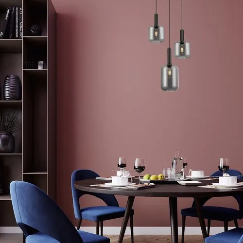 A Lissandra hármas függeszték visszafogott, mégis különleges megjelenésével számos modern nappali berendezésébe jól beilleszthető. A fémből készült matt fekete lámpát egy nagyobb és két kisebb henger alakú búra egészíti ki, amelynek anyaga színezett üveg. A függeszték nagyméretű, kerek dísztalp segítségével rögzíthető a mennyezetre, a kábelek anyaga textil. A lámpa három darab, egyenként legfeljebb 40 W teljesítményű fényforrással használható, a foglalatok típusa E27. Ízléstől függően választhatunk hozzá meleg vagy természetes fehér fényű fényforrásokat. Ha szeretnénk otthonos, meghitt hangulatot varázsolni a nappaliba, érdemes meleg fehér fényű izzókkal használni a függesztéket, amelyek jól kiegészítik a színezett búrát. Mivel a fényforrások láthatóak a búrán keresztül, jó ötlet lehet ezt a modellt a megszokottól eltérő, esztétikus izzókkal használni. A Lissandra hármas függeszték belógása 2100 mm, beépítési átmérője 395 mm. Ezt a modellt fényforrások nélkül szállítjuk.