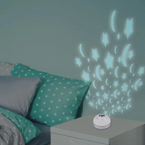 A Lupe dekorvilágítás funkcionális kialakításával és fehér színével bármely otthon dekoratív és praktikus kiegészítője lehet. Elsősorban a gyerekszobába ajánljuk, de elhelyezhetjük akár saját hálószobánkban is. A lámpa búráján elhelyezkedő aprócska, hold és csillag alakú nyílásokon keresztül jut ki a fény, varázslatos formákat vetítve a mennyezetre. A Lupe beépített LED fényforrással van ellátva, amelynek teljesítménye 0,5 W, fényereje 30 lumen, színhőmérséklete RGB. A dekorvilágítás dátum- és időkivetítő funkcióval is rendelkezik, ezenkívül ébresztőóraként is használhatjuk. A műanyagból készült, kisméretű lámpa három darab AAA típusú elemmel működik, az elemek nem tartozékok. A félgömböt formázó Lupe talpának átmérője 97 mm, a lámpa magassága 65 mm.