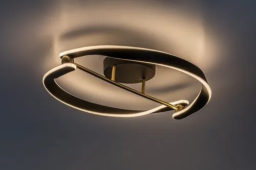 A Rábalux Adalind mennyezeti LED lámpa a Rábalux saját tervezésű modellje. Ideális választás azoknak, akik modern, kreatív formatervezésű lámpát keresnek. Elegáns arany-fekete színkombinációban, fém lámpatesttel és fehér műanyag búrával készül. Designjának lényegét két darab, együttesen kerek formát alkotó, csavart lámpaelem adja, amelyeket vízszintes, arany színű tartórúd kapcsol össze. A mennyezeti lámpa kerek, fekete dísztalp segítségével rögzíthető a mennyezetre. A lámpa beépített LED fényforrást tartalmaz, amely komoly fényerőt képvisel, és meleg fehér fénnyel világít, támogatva az otthonos, meghitt hangulat kialakítását. Ezt a modern mennyezeti lámpát elsősorban a nappaliba vagy a hálószobába ajánljuk. A LED technológia révén energiahatékonyság és hosszú élettartam jellemzi.