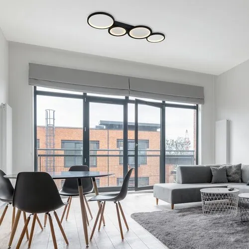 A Rábalux Aranis mennyezeti lámpát azoknak ajánljuk, akik kiterjedt funkcionalitással rendelkező, látványos mennyezeti lámpát keresnek modern otthonukba. Ez a modell különböző méretű, kerek formákból épül fel, melyek közül kettőnek a belsejét a Hold felszínére emlékeztető textúra teszi érdekessé. A lámpatest fémből, fekete színben készül, és fehér műanyag búra egészíti ki; a dísztalp szögletes. A lámpa beépített LED fényforrást tartalmaz, amelynek színhőmérséklete távirányítóval vagy fali kapcsolóval változtatható. A fényerő is állítható, valamint élhetünk a memória, időzítő és éjszakai funkció kínálta előnyökkel – mindegyik távirányítóval kezelhető. A lámpa tökéletes választás tágasabb nappalikba, étkezőkbe és hálószobákba. Energiahatékony működés és hosszú élettartam jellemzi.