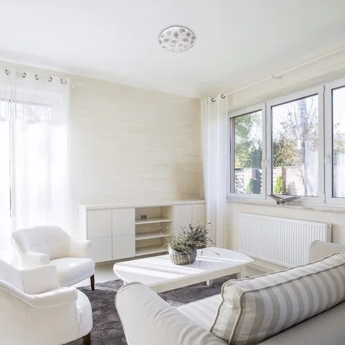 A modern stílus jegyében készült Benita mennyezeti lámpa a Rábalux saját tervezésű modellje, amely dekoratív darabja lehet nappalink vagy hálószobánk berendezésének. A lámpa különlegességét a búrája természet ihlette, légies motívumai adják. A kerek, fehér alapon mintás lámpa anyaga fém és műanyag, beépített fényforrása meleg fehér fényt sugároz. A LED fényforrás teljesítménye 18 W, fényereje 900 lumen, színhőmérséklete 3000 K, élettartama pedig 25 000 óra. A mennyezeti lámpa átmérője 260 mm, mennyezettől mért távolsága pedig mindössze 70 mm. Erre az elegáns modellre 5 év garanciát vállalunk.