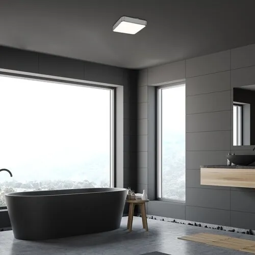 A Wolimir fürdőszobai lámpát azoknak ajánljuk, akik sokoldalú, extra funkciókkal felszerelt mennyezeti lámpát szeretnének modern fürdőszobájukba. A krómszínű, fém lámpatestből és fehér akrilbúrából álló modell szögletes formáját a lekerekített sarkak teszik lágyabbá. A mennyezeti lámpa beépített LED fényforrásának teljesítménye 22 W, fényereje 1800 lumen, élettartama 30 000 óra. A Wolimir dimmelhető, azaz fényereje változtatható, színhőmérséklete pedig 3000-6000 K között állítható. Mindkét funkció távirányító segítségével működtethető. Ezenkívül beállíthatunk RGB világítást is, azaz váltogathatjuk a színeket. További extrák a fali kapcsolóval, illetve távirányítóval állítható memória funkció, az időzítő, valamint az éjszakai funkció. A Wolimir IP44-es védettsége garantálja, hogy legfeljebb 1 mm átmérőjű tárgyak behatolása ellen, valamint bármilyen irányból fröccsenő víz ellen védett. A fürdőszobai lámpa mérete 290x290 mm, mennyezettől mért távolsága 70 mm.