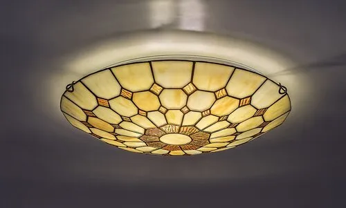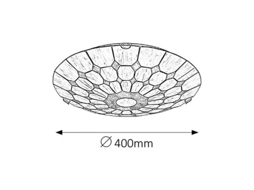 A Tiffany lámpabúrás mennyezeti lámpa, egyedi, kézzel készült termék, amely remek választás, ha a klasszikus elegancia mellett egyedülálló, különleges darabot keres. Technikai adatai: 2 foglalattal rendelkező, 40 cm átmérőjű, bronz színű fémből készített lámpatest, színes Tiffany-stílusú üveg lámpabúrával. A lámpatest E27-es foglalatú, max. 2x 60W teljesítményű halogén vagy energiatakarékos fényforrásokkal használható.