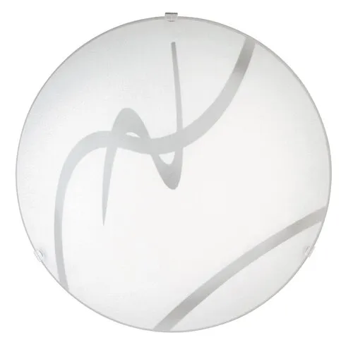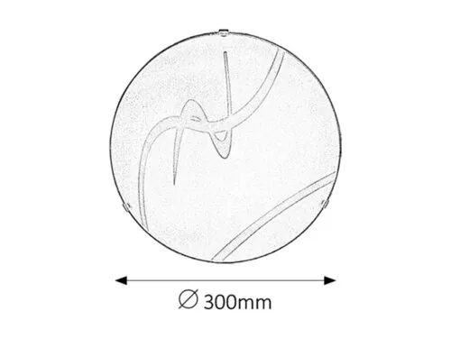 30 cm átmérőjű, retro megjelenésű, geometrikus formákkal díszített mennyezeti lámpa. Fém és műanyag szerkezet, mintás opálüveg lámpabúrával. E27-es foglalatában maximum 60W teljesítményű, halogén vagy LED fényforrással használható.