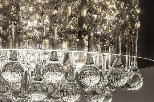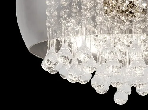 A modern stílus képviselői közé tartozó Ninelle mennyezeti lámpát azoknak ajánljuk, akik szívesen választanak csillogó, elegáns világítótestet a nappaliba vagy a hálószobába. A fémből készült, krómszínű lámpatestet színezett üvegbúra egészíti ki, amelynek egy részét függönyként takarja a ragyogó üvegkristály dekoráció. A Ninelle olyan, mint egy mennyezetről csüngő, különleges ékszer. Ez a látványos modell hat darab, egyenként legfeljebb 40 W teljesítményű fényforrással használható, a foglalatok típusa G9. Ízlésünktől és az elérni kívánt hatástól függően választhatunk hozzá meleg vagy természetes fehér fényű fényforrásokat. A Ninelle mennyezeti lámpa méretei a következők: átmérője 400 mm, mennyezettől mért távolsága 325 mm, beépítési átmérője 250 mm. Ezt a modellt fényforrások nélkül szállítjuk.