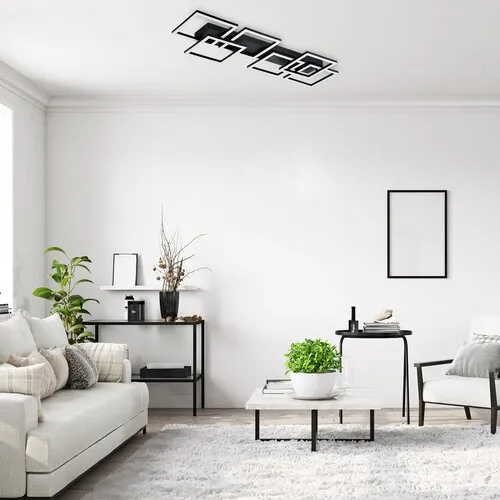 A Rábalux Fatma mennyezeti lámpa ideális választás azoknak, akik kifejezetten nagy fényerővel rendelkező, modern és látványos okos lámpát keresnek. Ez a modell fémből, fekete színben, fehér műanyag búrával készül. Egymást több ponton metsző, négyzet alakú elemekből épül fel, és hosszú, szögletes dísztalp segítségével rögzíthető a mennyezetre. Beépített LED fényforrást tartalmaz, amelynek színhőmérséklete távirányítóval vagy fali kapcsolóval változtatható. Ezenkívül állítható fényerővel, memória, időzítő és éjszakai funkcióval rendelkezik, melyek távirányítóval kezelhetőek. Kiemelkedő fényereje révén a mennyezeti lámpa tágasabb helyiségekbe is tökéletes. Ideális választás a nappaliba, étkezőbe vagy hálószobába. A LED technológia révén energiahatékony működés és hosszú élettartam jellemzi.