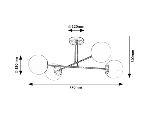 Az üde és elegáns megjelenésű, modern stílusú Kiara négyes mennyezeti lámpa remek választás a nappaliba vagy a hálószobába. A fémből készült, aranyszínű lámpatestet fehér üvegbúrák egészítik ki, és a lámpa kisméretű, kerek dísztalp segítségével rögzíthető a mennyezetre. A gömb formájú lámpafejek a dísztalphoz rögzített, vízszintes tartórudak végein helyezkednek el. A Kiara négy darab, egyenként legfeljebb 35 W teljesítményű, G45-ös fényforrással használható, a foglalatok típusa E27. Ízlésünktől és a felszerelés helyétől függően ehhez a modellhez választhatunk meleg vagy természetes fehér fényű izzókat. Ha a hálószobában helyezzük el, érdemes meleg fehér fényű fényforrásokkal működtetni, hiszen ez a típusú fény otthonos, meghitt hangulatot áraszt, pihenteti a szemet, és segít ellazulni. A Kiara mennyezeti lámpa szélessége 770 mm, mennyezettől mért távolsága 300 mm, egy-egy búra átmérője 130 mm, a lámpa beépítési átmérője 120 mm. Ezt a modellt fényforrások nélkül szállítjuk.