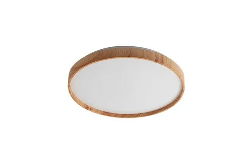 A skandináv stílusú, kerek Leana mennyezeti lámpa nappalink, étkezőnk vagy hálószobánk berendezésének egyszerű, természetes megjelenésű kiegészítője lehet. A fémből készült, bükk színű lámpatest csillogó effekttel ellátott, fehér műanyagbúrával egészül ki. A Leana beépített LED fényforrással rendelkezik, amelynek a teljesítménye 24 W, fényereje 1300 lumen, élettartama pedig 20 000 óra. A 3000 K színhőmérsékletű fényforrás meleg fehér fénnyel világít, otthonos, meghitt hangulatot teremtve a szobában. A Leana mennyezeti lámpa átmérője 380 mm, mennyezettől mért távolsága pedig mindössze 60 mm. Erre a modellre 5 év garanciát vállalunk.