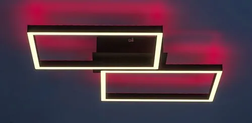A modern nappalikba szánt, szögletes elemekből építkező Ludano okos mennyezeti lámpa nem csupán kreatív formatervezésével hódít, de számtalan extra funkciójával is. A fémből készült matt fekete modellt fehér műanyagbúra egészíti ki, és négyzet alakú dísztalp segítségével rögzíthető a mennyezetre. A lámpa a G energiaosztályba tartozó beépített LED fényforrással rendelkezik, amelynek a teljesítménye 40 W, fényereje búrával 2400 lumen, búra nélkül 3700 lumen, élettartama 30 000 óra. A mennyezeti lámpa színhőmérséklete fali kapcsoló vagy távirányító segítségével 2700–6500 K között változtatható, miközben a fényerőt távirányítóval szabályozhatjuk. A Ludano lámpát távirányítóval vagy fali kapcsolóval vezérelhető memória funkcióval, távirányítóval állítható időzítő funkcióval és éjszakai funkcióval is ellátták. Az RGB és a háttérfény funkció már csak a hab a tortán. A mennyezeti lámpa szélessége 460 mm, magassága 410 mm, mennyezettől mért távolsága 65 mm.