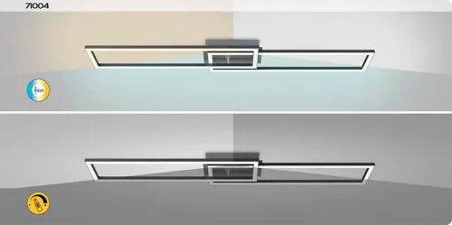 A szögletes elemekből felépülő Nefertum mennyezeti lámpa letisztult dizájnjával és sokoldalúságával tökéletes választás a legmodernebb nappaliba is. A fémből és műanyagból készült fekete modellt fehér műanyagbúra egészíti ki, a szögletes dísztalphoz két oldalirányban hosszan kinyúló téglalap alakú lámpaelem kapcsolódik. A Nefertum a G energiaosztályba tartozó beépített LED fényforrással rendelkezik, amelynek a teljesítménye 38 W, fényereje búrával 3150 lumen, búra nélkül 4400 lumen, élettartama pedig 25 000 óra. A lámpa színhőmérséklete 3000–6500 K között változtatható, ezenkívül dimmelhető, azaz fényereje is szabályozható, valamint memória, időzítő és éjszakai fény funkcióval is rendelkezik. Az extra funkciókat távirányító vagy telefonos alkalmazás segítségével szabályozhatjuk – a lámpa wifin keresztül vezérelhető. A Cooperius egy 1,5 V feszültségű és 400 mAh kapacitású akkumulátorral is fel van szerelve. A lámpa szélessége 1020 mm, magassága 200 mm, mennyezettől mért távolsága 65 mm.