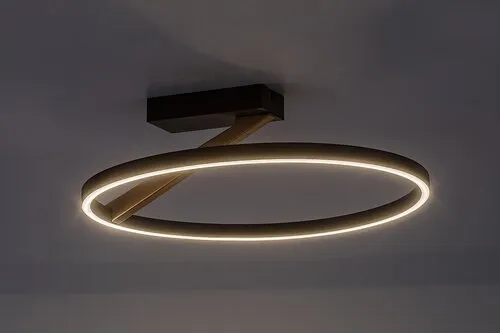 A Rábalux Renara mennyezeti lámpa ideális választás azoknak, akik kedvelik a modern, letisztult formavilágú lámpákat. Ezt a mennyezeti LED lámpát egyszerű forma és elegancia jellemzi: a lámpatest egyetlen fekete, gyűrű formájú elemből áll, amelyet arany színű lámpaelem köt össze a dísztalppal. A lámpatest anyaga fém, míg a búra fehér színű műanyag. A lámpa téglalap alakú, fekete dísztalp segítségével rögzíthető a mennyezetre. Beépített LED fényforrást tartalmaz, amely meleg fehér fénnyel világít. Ez a típusú fény elősegíti az otthonos, meghitt hangulat megteremtését, és támogatja a pihenésre hangolódást, ezért a mennyezeti lámpát elsősorban a nappaliba vagy a hálószobába ajánljuk. A LED technológiának köszönhetően ezt a modellt energiahatékony működés és hosszú élettartam jellemzi.