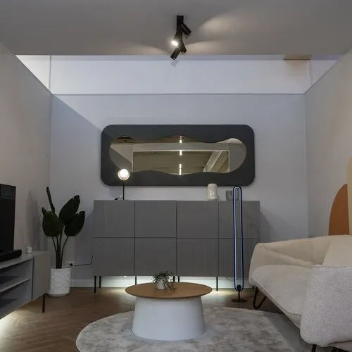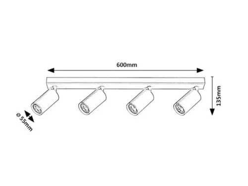 A minimál stílusú Solo négyes spotlámpa modern nappalink vagy hálószobánk berendezésének praktikus darabja lehet. A teljes egészében fémből készült, fekete színű modellt henger alakú búrák és hosszúkás, téglalap alakú dísztalp egészíti ki. A spot lámpa négy darab, egyenként legfeljebb 25 W teljesítményű fényforrással használható, a foglalatok típusa GU10. Ízléstől függően választhatunk hozzá meleg vagy természetes fehér fényű fényforrásokat. Az állítható lámpafejeknek köszönhetően igény szerint irányíthatjuk a lámpa fényét, így hatékonyan bevilágíthatjuk vele az egész szobát. A Solo négyes spotlámpa méretei a következők: szélessége 600 mm, magassága 140 mm, egy-egy búra átmérője 55 mm, a lámpa mennyezettől mért távolsága 135 mm. Ezt a modellt fényforrások nélkül szállítjuk.