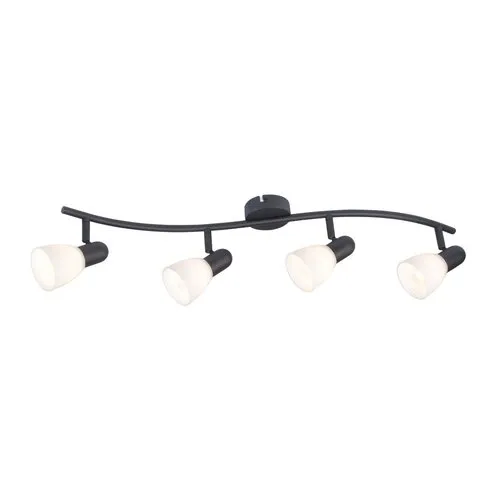 A Rábalux Soma négyes mennyezeti spot lámpát azoknak ajánljuk, akik jól irányítható fénysugarakkal szeretnék biztosítani otthonuk tereinek hatékony megvilágítását. Ez az elegáns modell ideális választás a nappaliba, étkezőbe, előszobába vagy a hálószobába. A spot lámpa fémből készül fekete testtel és fehér, A vonalú üveg búrákkal. Kisméretű, kerek dísztalp segítségével rögzíthető a mennyezetre. A lámpafejek a dísztalphoz kapcsolódó íves tartórúdon helyezkednek el sorban, egymás mellett, és a gömbcsuklós megoldás révén mozgathatóak. Az igény szerint irányítható fénysugarak gondoskodnak a helyiség tökéletes bevilágításáról. A spot lámpa négy darab, egyenként legfeljebb 40 W teljesítményű fényforrással használható, a foglalatok típusa E14. Ezt a modellt fényforrások nélkül szállítjuk.