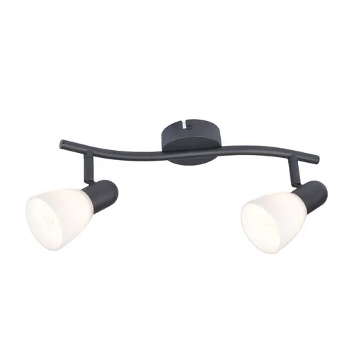 A Rábalux Soma kettes mennyezeti spot lámpát azoknak ajánljuk, akik a szórt fényt biztosító lámpák helyett jobban kedvelik a koncentrált megvilágítást kínáló, mozgatható lámpákat. Ez az elegáns modell ideális választás a nappaliba, étkezőbe, előszobába vagy a hálószobába. A spot lámpa fémből készül fekete testtel és fehér, A vonalú üveg búrákkal. Kisméretű, kerek dísztalp segítségével rögzíthető a mennyezetre. A lámpafejek a dísztalphoz kapcsolódó íves tartórúdhoz vannak rögzítve, és a gömbcsuklós megoldásnak köszönhetően mozgathatóak, így fényüket tetszés szerint irányíthatjuk. A kettes spot lámpa két darab, egyenként legfeljebb 40 W teljesítményű fényforrással használható, a foglalatok típusa E14. Ezt a modellt fényforrások nélkül szállítjuk.