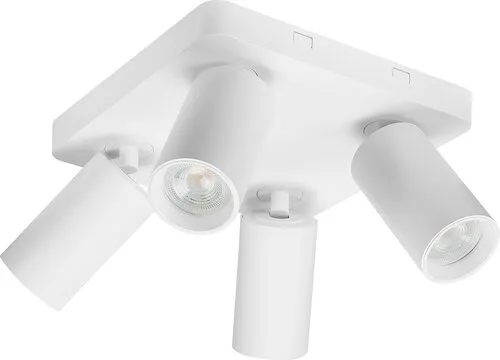 A Rábalux Yorli négyes mennyezeti spotlámpát azoknak ajánljuk, akik a modern megjelenésen túl nagy hangsúlyt fektetnek a világítás hatékonyságára is. Az elegáns, fehér spot lámpa alumínium testtel, valamint henger alakú műanyag búrákkal készül, és négyzet alakú dísztalp segítségével rögzíthető a mennyezetre. A lámpafejek a négyzet négy sarkán helyezkednek el és egyenként mozgathatóak, így fényük igény szerint irányítható. A négy lámpafej garantálja a teljes helyiség hatékony bevilágítását. A spot lámpát elsősorban a nappaliba, hálószobába vagy az előszobába ajánljuk. A mennyezeti spot négy darab, egyenként legfeljebb 7 W teljesítményű fényforrással használható, a foglalatok típusa GU10. A négyes spot lámpát fényforrások nélkül szállítjuk.