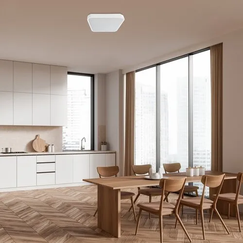 A Rábalux Alenzo mennyezeti lámpát azoknak ajánljuk, akik számára a lámpa kiválasztásakor a funkcionalitás az elsődleges szempont. A négyzet alakú LED panel műszaki stílusban, teljes egészében műanyagból, fehér színben készül. Nagy felületének köszönhetően hatékonyan világítja be a szobát, ráadásul okos funkciókat is kínál. Beépített LED fényforrást tartalmaz, amelynek színhőmérséklete DIP-kapcsoló segítségével háromféle változatban állítható. Mivel a mennyezeti lámpa védett az 1 mm-nél nagyobb szilárd tárgyak behatolása, valamint minden irányból fröccsenő víz ellen, ideális választás nemcsak a nappaliba és a dolgozószobába, de bátran felszerelhetjük a fürdőszobában is. A LED technológia gondoskodik a lámpa energiahatékony működéséről és hosszú élettartamáról.