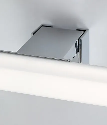 A Rábalux Oliro fürdőszobai fali lámpát azoknak ajánljuk, akik rugalmasan elhelyezhető kiegészítő lámpát keresnek modern fürdőjükbe. A vízálló modell krómszínű testtel és szögletes, fehér búrával, teljes egészében műanyagból készül, és a csomagban található rögzítőklipsz segítségével egyaránt felerősíthető a tükörre, fürdőszobai bútorra vagy a falra. A fürdőszoba lámpa beépített LED fényforrást tartalmaz, amely természetes fehér fénnyel világít, modern, tiszta hatást keltve. Kialakításának köszönhetően a lámpa a búra teljes felületén bocsát ki fényt. A fali lámpa IP44-es védettséggel bír, ennek köszönhetően biztonságosan használható a fürdőszobában. A LED technológia energiahatékony működéssel és hosszú élettartammal ruházza fel.