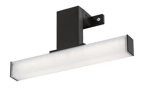 A Rábalux Oliro fürdőszobai fali lámpa ideális választás azoknak, akik rugalmasan elhelyezhető, kisebb méretű kiegészítő lámpát keresnek modern fürdőjükbe. A vízálló modell fekete testtel és szögletes, fehér búrával, teljes egészében műanyagból készül, és a csomagban található rögzítőklipsz segítségével egyaránt felerősíthető tükörre, bútorra vagy a falra. A fürdőszoba lámpa beépített LED fényforrást tartalmaz, amely természetes fehér fénnyel világít, modern, tiszta hatást keltve. Kialakításának köszönhetően a lámpa a búra teljes felületén bocsát ki fényt. A fali lámpa IP44-es védettséggel bír, ennek köszönhetően biztonságosan használható a fürdőszobában. A LED technológia energiahatékony működést és hosszú élettartamot biztosít.