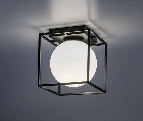 A Rábalux Modane kültéri fali/mennyezeti lámpa modern, geometrikus megjelenéssel emeli a homlokzat vagy a bejárat hangulatát. Az fekete, letisztult fém kockakeretben elhelyezett, fehér opálüveg gömbbúra lágy, egyenletes fényt biztosít, amely nem vakít és barátságos környezetet teremt. A kétféle szerelhetőségnek köszönhetően falra és mennyezetre egyaránt ideális, így sokoldalú választás fedett teraszra, erkélyre, előtérbe vagy kerti tároló elé is. E14 foglalattal készül, energiatakarékos LED izzóval is használható. Időjárásálló, fröccsenő víz ellen védett kialakítása megbízható működést nyújt. A lámpát fényforrás nélkül szállítjuk.