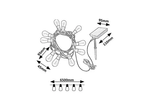 A Rábalux Zirc kültéri szolár fényfüzért azoknak ajánljuk, akik kedvelik a fenntartható és praktikus világítási megoldásokat. Nagyszerű választás bármely modern kertbe, ahol szeretnénk hangulatos fényekkel otthonosabbá tenni a környezetet. Ez a leszúrható napelemes modell fekete testtel, átlátszó búrával, műanyagból készül, és okos fényérzékelő funkcióval látták el. Beépített LED fényforrásokkal rendelkezik, amelyek meleg fehér fényt sugároznak, illetve villogó üzemmódba is állíthatók. A fényfüzért akkumulátorral szerelték fel, amely 6–8 óra alatt töltődik fel, és 8–10 órán keresztül üzemel egy feltöltéssel. A szolár lámpa védett az 1 mm-nél nagyobb szilárd részecskéktől és bármely irányból érkező fröccsenő víz ellen.
