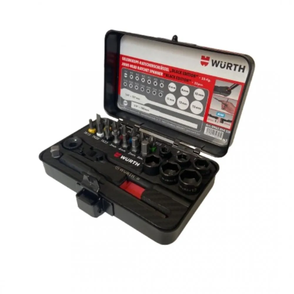 23 részes Würth limitált 1/4 colos csuklós fejű racsnis csavarkulcs Black Edition készlet
